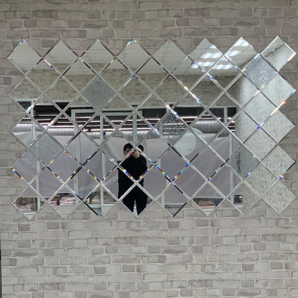 Использована серебристая зеркальная плитка "вытянутый ромб".